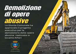 La Giunta Comunale, su proposta dell’assessore all’Urbanistica Giovanni Greco, ha approvato il progetto esecutivo per la demolizione di opere abusive realizzate in località Alfieri, all’interno di un’area di rilevante interesse paesaggistico e ambientale.