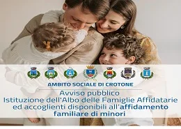 Una iniziativa che rientra tra quelle promosse dall’Ambito Sociale di Crotone che comprende i comuni di Belvedere Spinello, Cutro, Isola Capo Rizzuto, Rocca di Neto, San Mauro Marchesato e Scandale, oltre al comune di Crotone in qualità di ente capofila.La finalità dell’iniziativa è favorire la sensibilizzazione e la diffusione della cultura della solidarietà tra nuclei familiari mediante l’istituto dell’affidamento familiare.