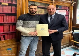 Il sindaco Voce, questa mattina, a nome di tutta la comunità cittadina ha voluto ringraziarlo nella Casa Comunale consegnandogli un attestato nel quale esprimendo la riconoscenza della comunità cittadina si sottolinea il nobile gesto di altruismo e generosità.