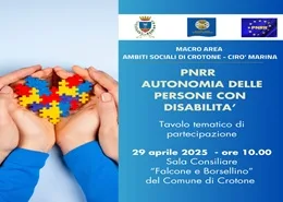 Il 3 gennaio 2025 alle ore 10.00 nella Sala Consiliare "Falcone e Borsellino" del Comune di Crotone si terrà la presentazione del potenziamento dei servizi dell'Ambito Sociale di Crotone Saranno presenti i sindaci dell'Ambito Sociale