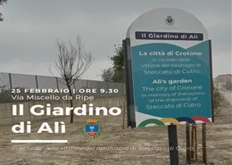 In occasione del secondo anniversario della tragedia di Steccato di Cutro il 25 febbraio 2025 alle ore 9.30 si terrà una cerimonia di commemorazione presso il "Giardino di Alì" in via Miscello da Ripe.