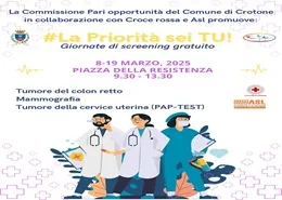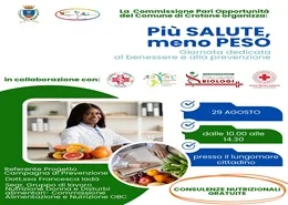 La Commissione Pari Opportunità del Comune di Crotone, in occasione della Giornata dedicata al benessere e alla prevenzione, promuove l'iniziativa "Più salute, meno peso"
