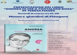Il 21 marzo 2025 alle ore 10.00 presso il Museo e Giardini di Pitagora si terrà la presentazione del libro di Teresa Manes "Andrea oltre il pantalone rosa"