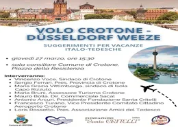 Il 27 marzo 2025 alle ore 15.30 nella Sala Consiliare "Falcone e Borsellino" del Comune di Crotone si terrà l'iniziativa "Volo Crotone - Dusseldof Weeze - suggerimenti per vacanze italo - tedesche"