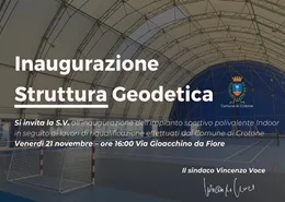 Il 21 novembre 2025 alle ore 16.00 si terrà l'inaugurazione, in seguito ai lavori di riqualificazione effettuati dal Comune di Crotone, della Struttura Geodetica, impianto polivalente indoor