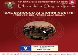 Crotone Autunno Insieme 45° Stagione concertistica Hera della Magna Grecia "Dal barocco ai giorni nostri - i virtuosi del Teatro alla Scala" 9 novembre 2025 - ore 20.30 Teatro Comunale "Vincenzo Scaramuzza"